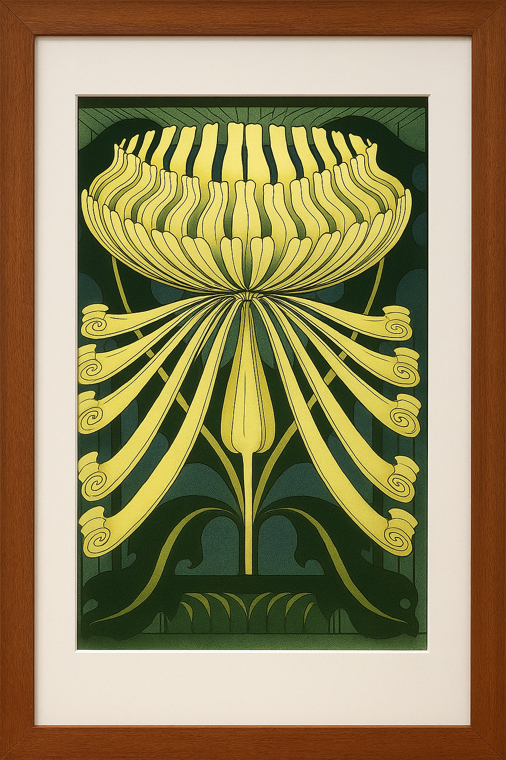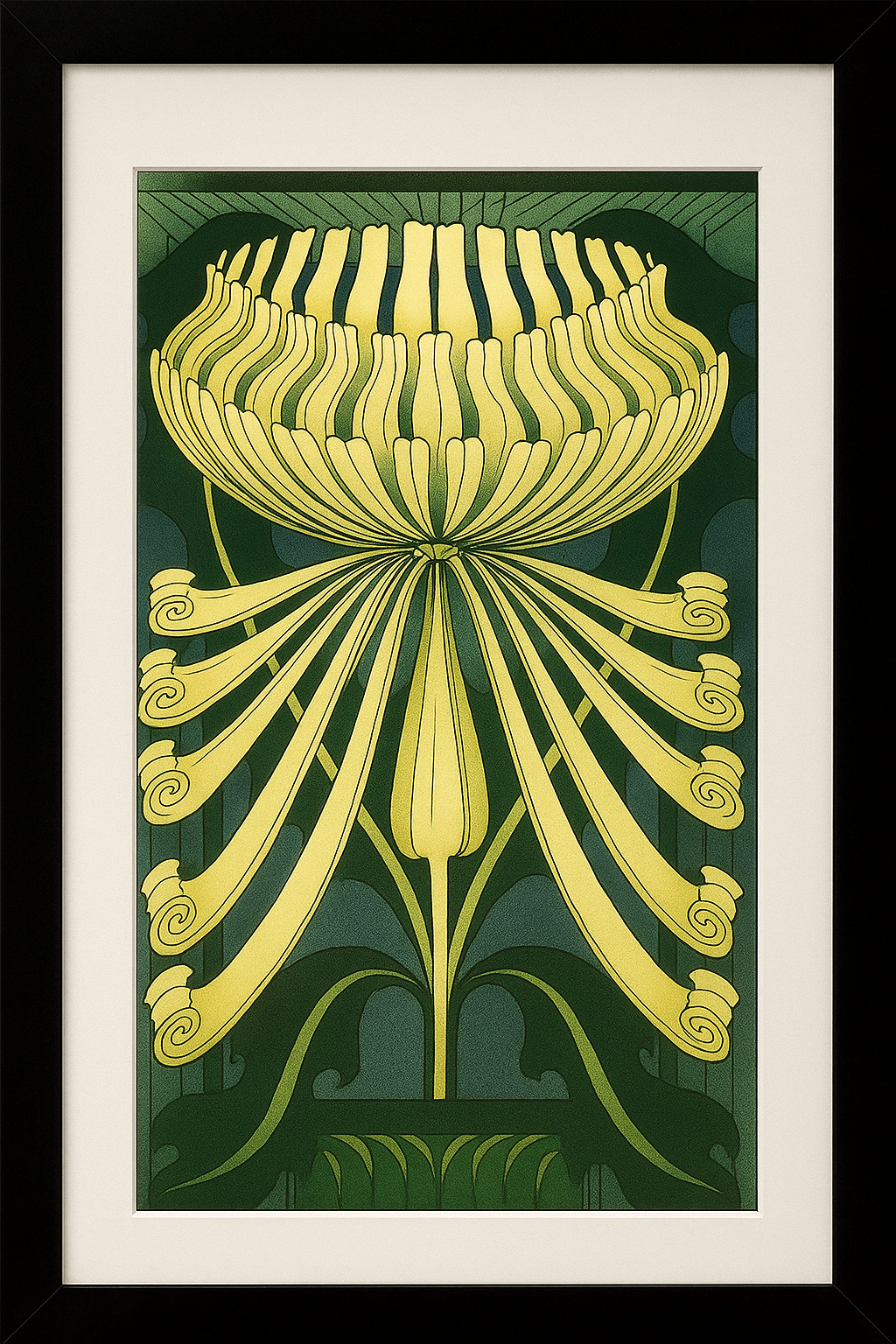 Printed from the original design plates from 1910, this print captures the grace and beauty of authentic art nouveau designs.