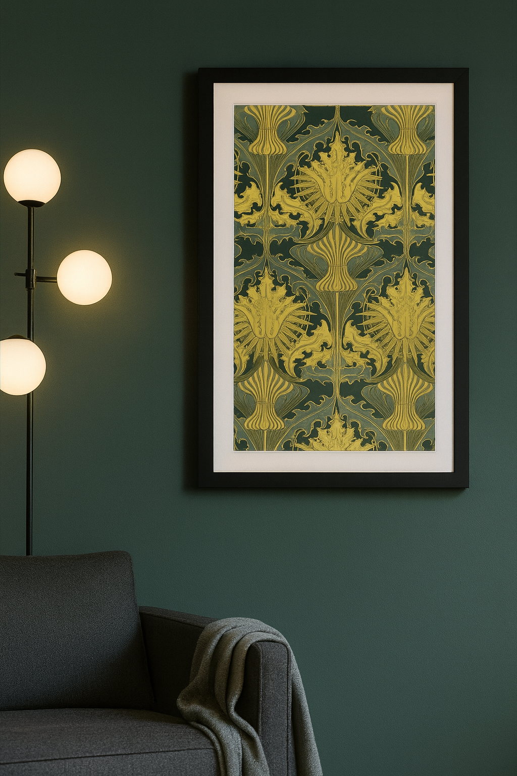 Printed from the original design plates from 1910, this print captures the grace and beauty of authentic art nouveau designs.