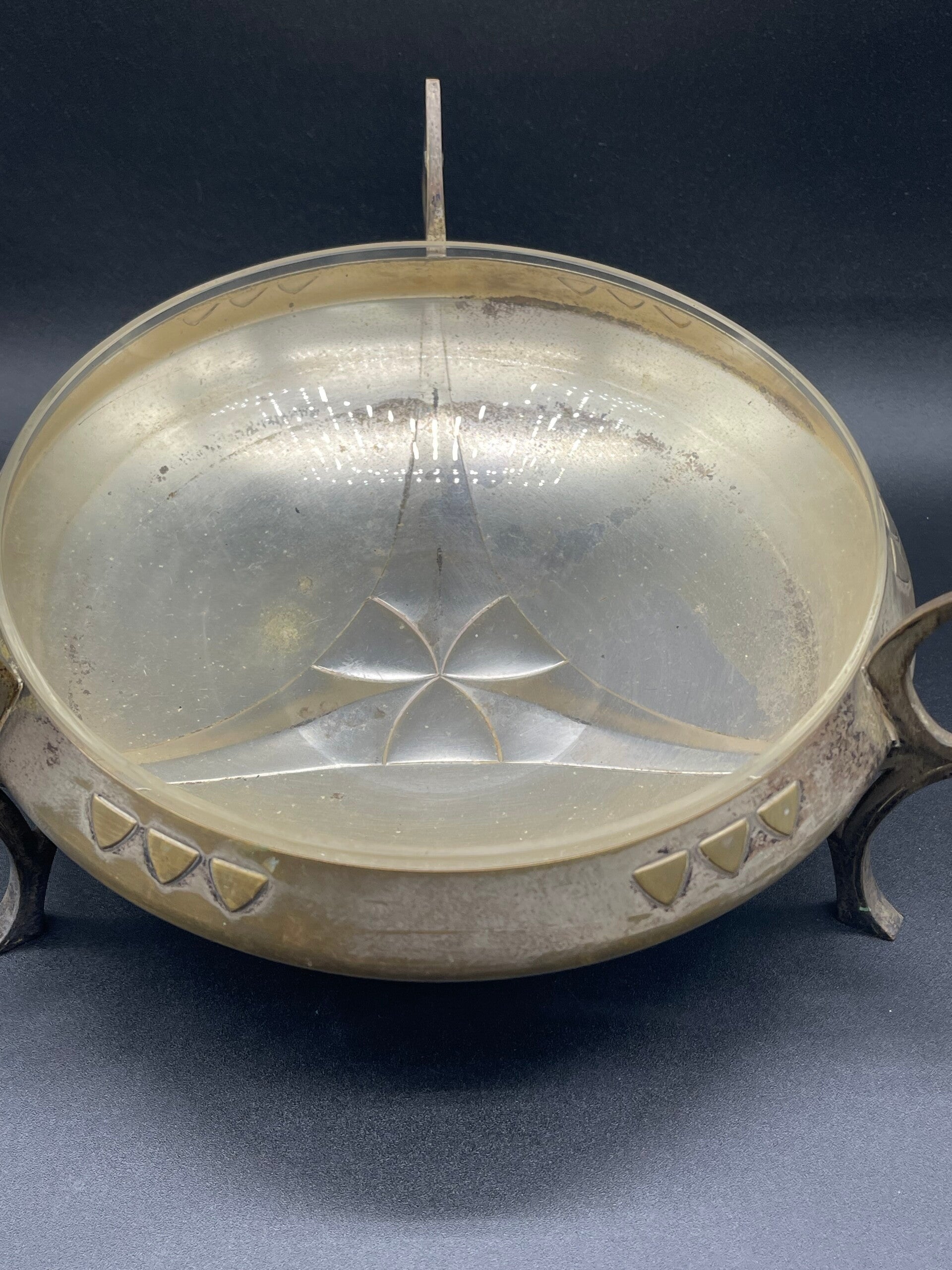 An authentic WMF (Württembergische Metallwarenfabrik) Art Nouveau centerpiece bowl with original glass liner dating to around 1900–1910.